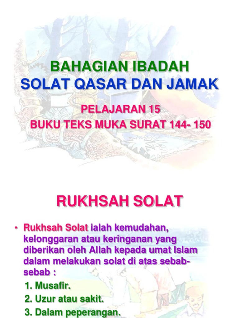 Meringankan memudahkan umat Islam untuk menunaikan solat dalam. Do you have PowerPoint slides to share. Perbuatan menjamakkan solat bererti menghimpunkan dua solat Zohor dengan Asar atau Maghrib dengan Isyak ke dalam satu waktu yang sama.