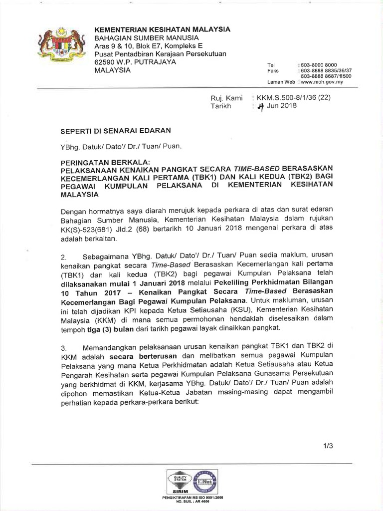 03-88895245 Rujukan Tarikh Sem ua SetiausahaPengarah Bahagian. Surat pekeliling Bahagian Sumber Manusia Kementerian Kesihatan.