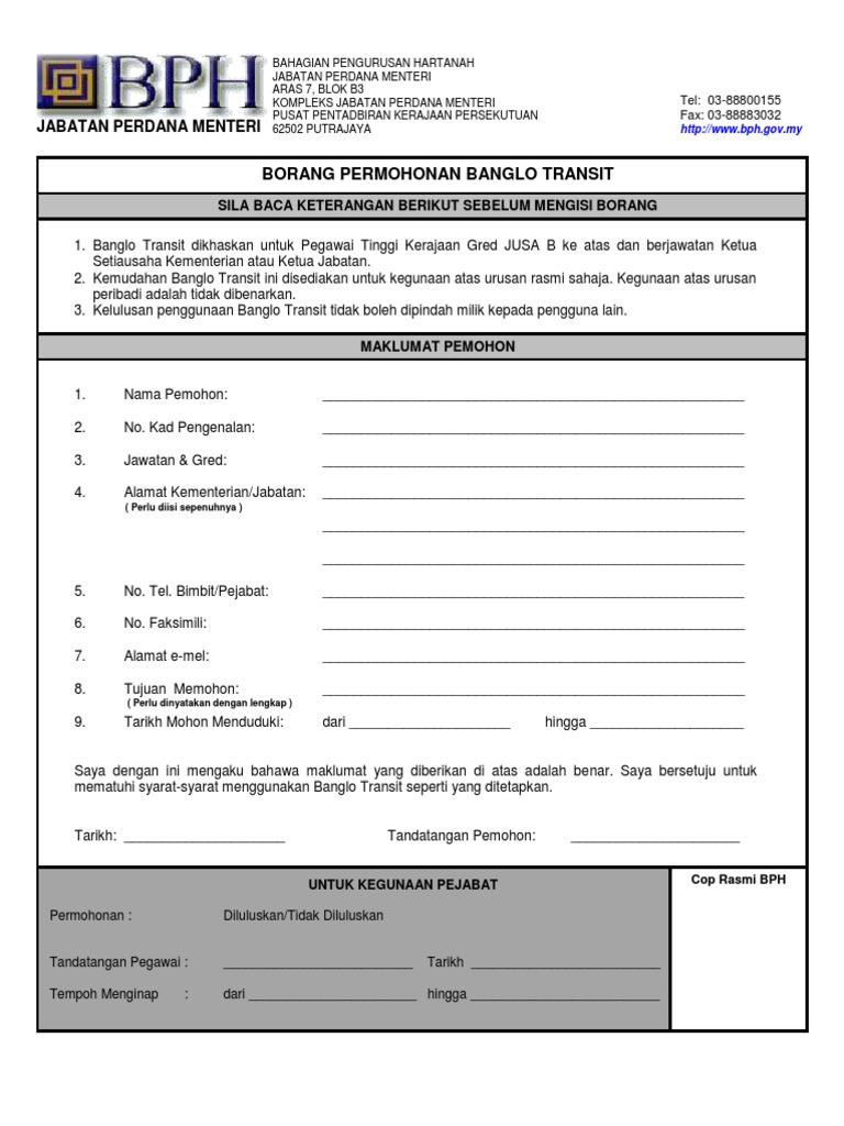 Borang Permohonan Bahagian Pengurusan Hartanah Jabatan
