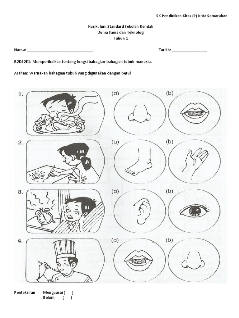 Dunia Sains Dan Teknologi Tahun 1 Fungsi Badan Manusia