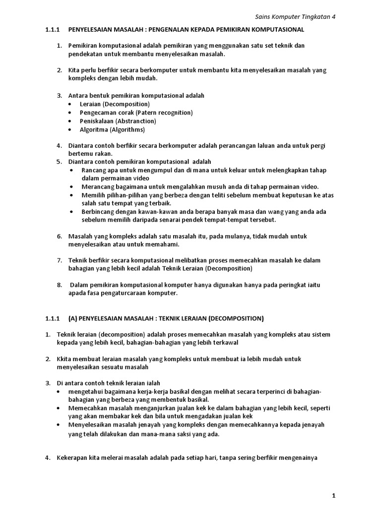 Asas Sains Komputer Tingkatan 1 1 1 1 Pemikiran Komputasional