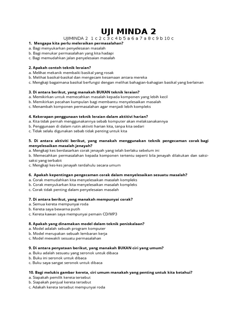 Uji Minda 1 Docx Topik 1 Docx Uji Minda 1 3 Di Antara Berikut Yang Manakah Bukan Teknik Pemikiran Komputasional A Teknik Pengecaman Corak B Teknik Course Hero